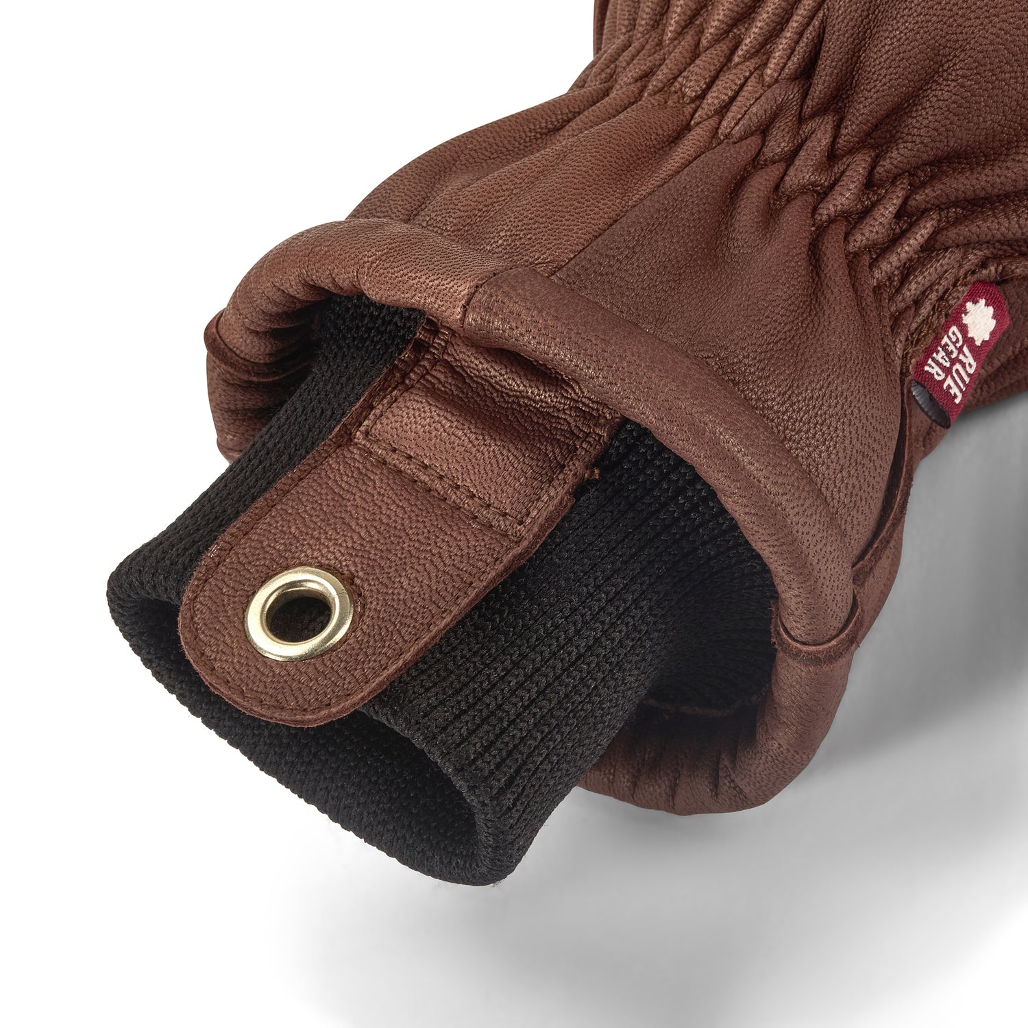 A nylon cuff seals in warmth at the wrist, reinforced with a leather pull tab for lasting durability. An eyelet and carabiner let you clip the gloves together or hang them to dry after a day on the mountain. Every feature is carefully considered, minimalist, functional, and built to last.